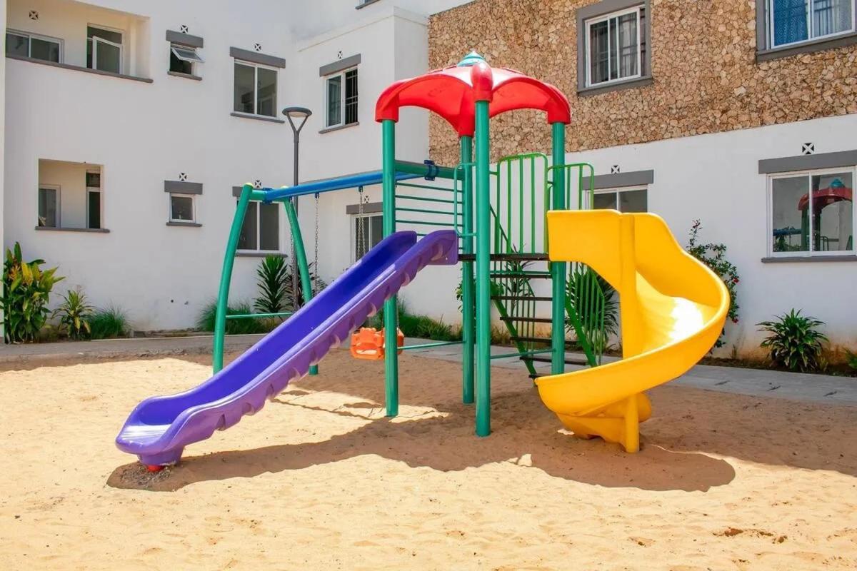 The apartment features a childrens playground and a picnic area.